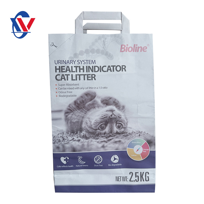 คุณสมบัติ: วาล์วทางเดียวช่วยให้อากาศสกัดจากถุงในขณะที่ป้องกันไม่ให้ฝุ่นหลบหนีเมื่อบรรจุภัณฑ์แมวเบนโทไนต์