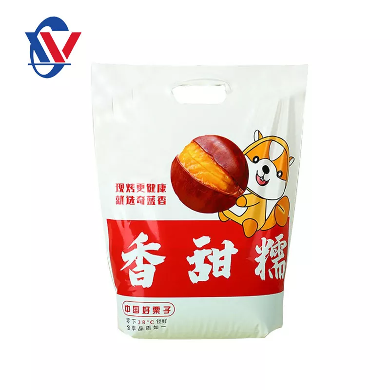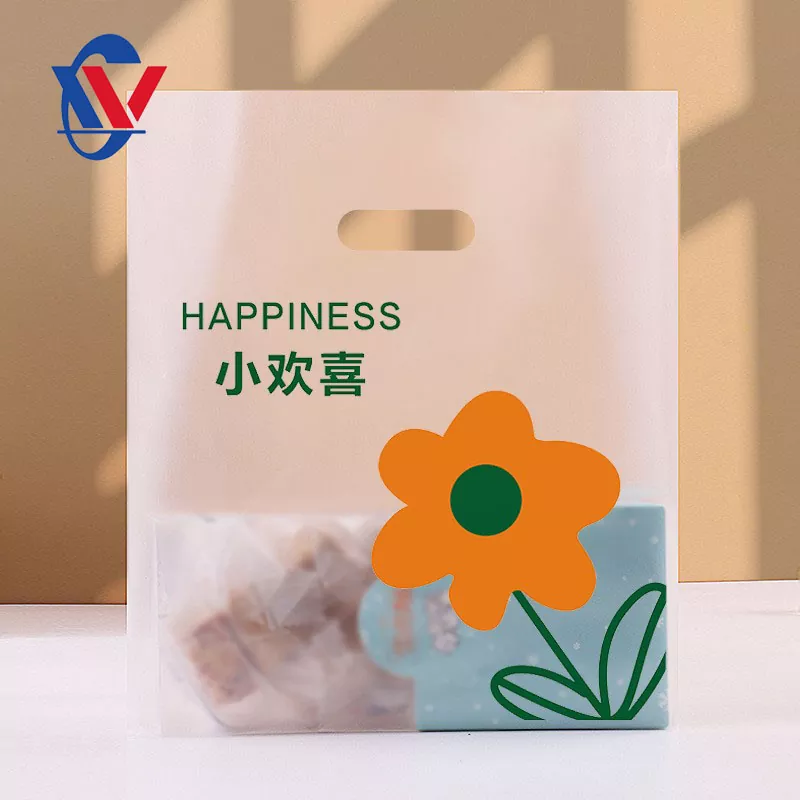 วัสดุของกระเป๋าอาหารมักเป็นพลาสติกซึ่งมีความทนทานและความสามารถในการรับน้ำหนักที่ดีและเหมาะสำหรับการรีไซเคิล นอกจากนี้กระเป๋าหิ้วชนิดนี้ยังสามารถปรับแต่งด้วยโลโก้ที่พิมพ์เพื่อเพิ่มผลกระทบการประชาสัมพันธ์ของแบรนด์หรือพ่อค้า ในตลาดราคาถุงหิ้วสี่นิ้วค่อนข้างถูกซึ่งเหมาะสำหรับการซื้อและการใช้งานขนาดใหญ่