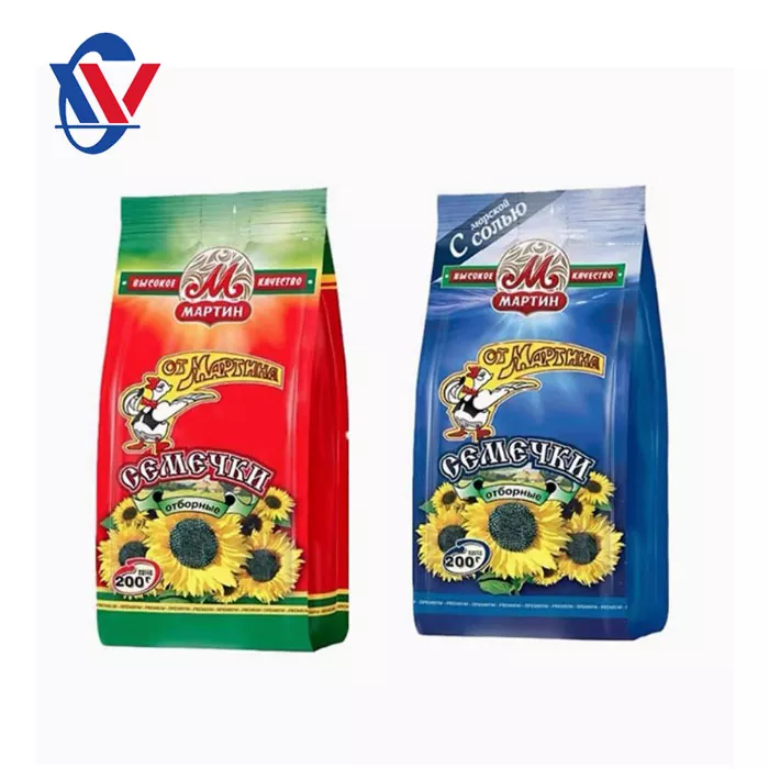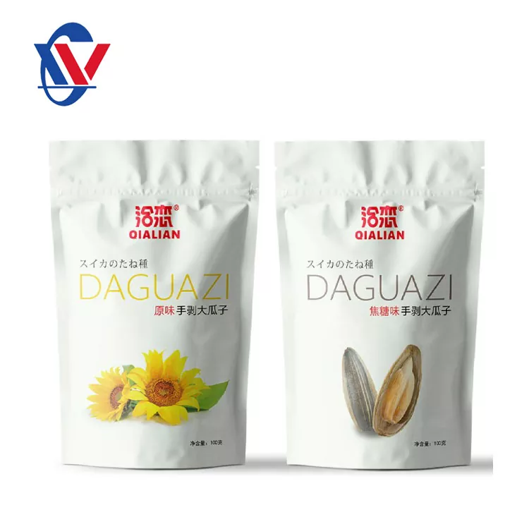 วัสดุบรรจุภัณฑ์ทั่วไป ได้แก่ กระดาษคราฟท์, อลูมิเนียมฟอยล์ (AL), โพลีเอทิลีนความหนาแน่นต่ำ (LDPE), โพลีโพรพีลีนที่มุ่งเน้น biaxially (OPP), วัสดุคอมโพสิตอลูมิเนียมพลาสติก (VMPET/PE) ฯลฯ การเลือกวัสดุเหล่านี้ขึ้นอยู่กับลักษณะของพวกเขา ตัวอย่างเช่นกระดาษคราฟท์มีความแข็งและพื้นผิวที่ดีซึ่งเหมาะสำหรับบรรจุภัณฑ์ด้านนอก อลูมิเนียมฟอยล์ให้คุณสมบัติอุปสรรคที่ดีเพื่อป้องกันไม่ให้เมล็ดแตงโมเปียก โพลีเอทิลีนที่มีความหนาแน่นต่ำ (LDPE) และโพรพิลีนที่มุ่งเน้นไปที่ biaxially (OPP) ถูกนำมาใช้อย่างกว้างขวางเนื่องจากความโปร่งใสและคุณสมบัติการปิดผนึก