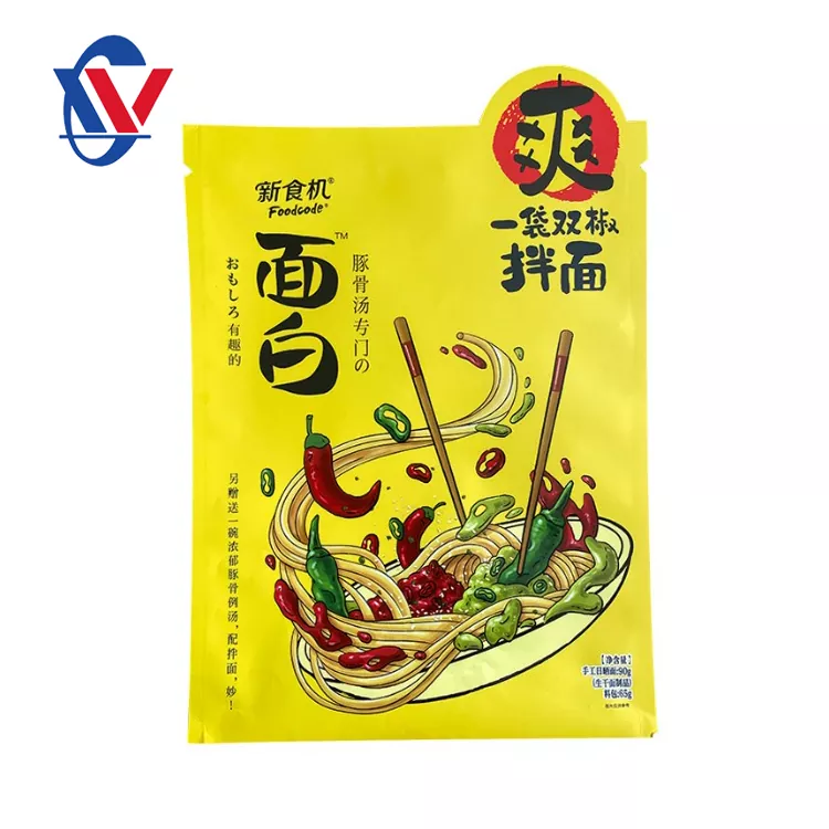 ถุงบรรจุก๋วยเตี๋ยวข้าวมักจะทำจากฟิล์มคอมโพสิตพลาสติกและฟิล์มคอมโพสิตอะลูมิเนส ฟิล์มคอมโพสิตพลาสติกมีการปิดผนึกที่ดีและความต้านทานความชื้นซึ่งสามารถยืดอายุการเก็บรักษาของอาหารได้อย่างมีประสิทธิภาพ ฟิล์มคอมโพสิต Aluminized มีคุณสมบัติกันแสงที่ดีและสามารถป้องกันไม่ให้อาหารเสื่อมสภาพเนื่องจากแสง นอกจากนี้ถุงบรรจุภัณฑ์บางใบยังใช้การออกแบบที่หนาขึ้นเพื่อให้การป้องกันและพกพาที่ดีขึ้น